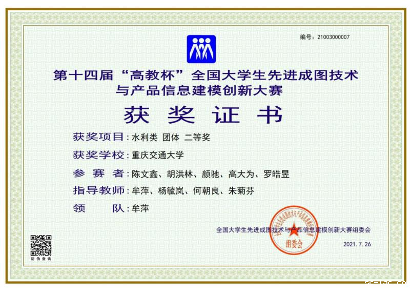 河海学院杨毓岚、朱菊芬、牟萍、何朝良四位老师指导的谭杨光、梅英杰、石定健、邓漩、罗怡明同学获水利类团体二等奖;