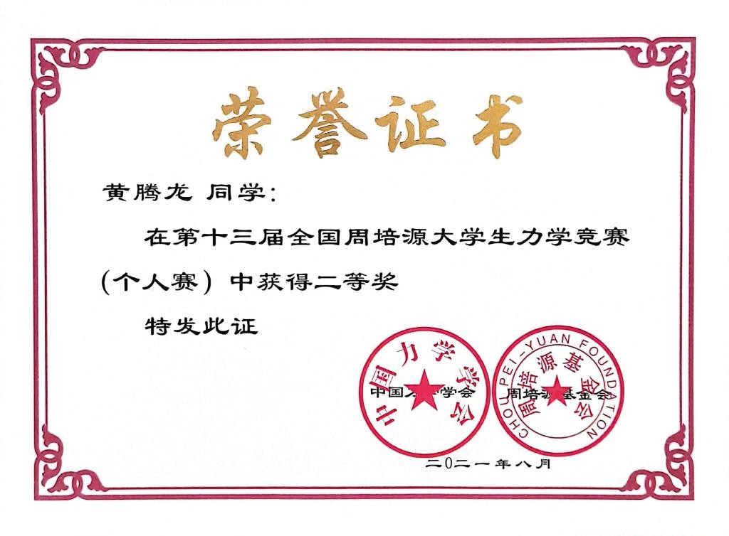 从中国力学学会传来喜讯,我校共49名学生在“第十三届全国周培源大学生力学竞赛”中获得佳绩。其中航空学院2018级飞行器动力工程专业黄腾龙同学荣获全国个人赛二等奖,实现了我校在此奖项中零的突破,王羿等8人荣获全国个人赛三等奖,翟皓辰等40人荣获全国个人赛优秀奖,郑佳艳等获优秀指导老师。