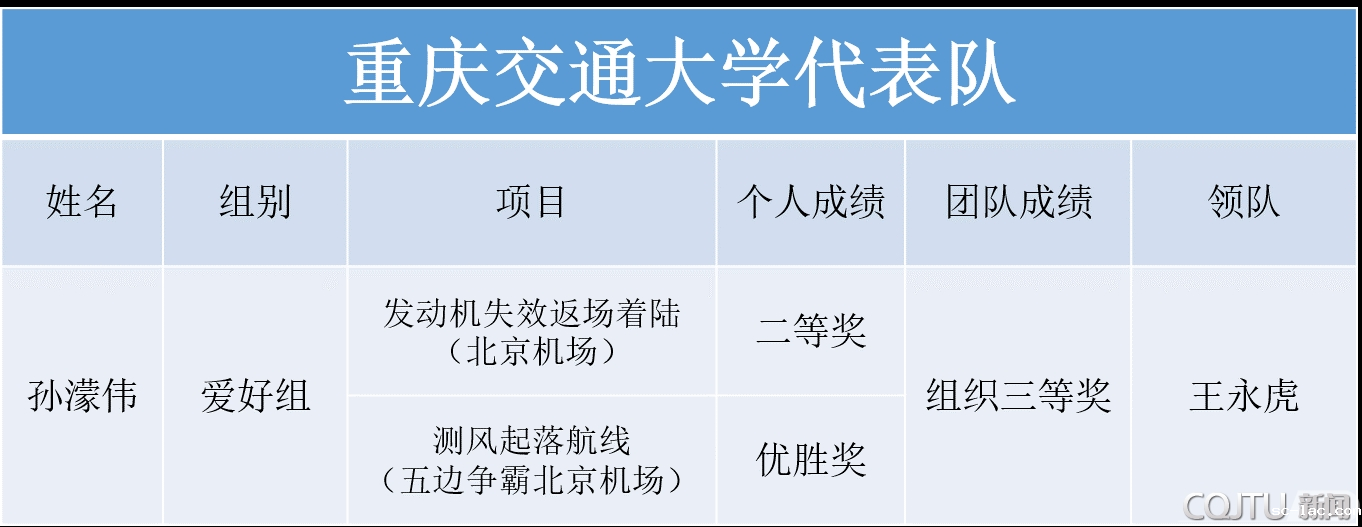 国家体育局发布赛事后,航空学院领导高度重视,赛前邀请相关专业人士进行项目培训,经过严格训练后确定由王永虎教授率队、孙濛伟同学参赛,最终获得优异成绩。