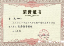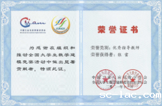 数模教练组的张雷老师获得全国优秀指导教师荣誉证书