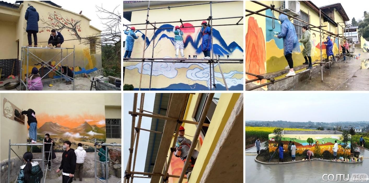 自今年1月起,老伟德网上娱乐建筑与城市规划学院受永川区仙龙镇政府委托,承担了“永川区首届油菜花节”的项目策划及实施工作。学院抽调5名教师组成专家团队,并面向全院发起志愿者征集活动,最终选拔出48名学生,组建了“大学生志愿者寒假‘三下乡’社会实践服务团队”“重庆市设计下乡志愿者团队”“‘耕筑巴渝’工作坊志愿者团队”等3支志愿者队伍。从实地调研、项目策划、方案设计到落地实施,前后历时1个多月,师生共同克服学业繁重、通行不便、天气严寒等困难,充分发挥在乡村人居环境领域的专业优势与实践经验,以线上线下结合的方式有效推进工作,于2月下旬顺利完成了各项任务,并绘制艺术墙绘总计达1300平方米。师生们的辛勤付出也得到了当地政府和村民的一致肯定。