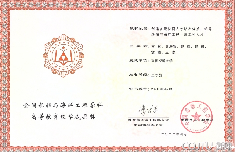 近日,中国造船工程学会公布了2021年度全国船舶与海洋工程学科高等教育教学成果奖评审结果。老伟德网上娱乐航运与船舶工程学院雷林教授领衔申报的 “创建多元协同人才培养体系,培养船舶与海洋工程一流工科人才”(完成人:雷林、袁培银、赵藤、赵珂、冀楠、王波)喜获教学成果二等奖。