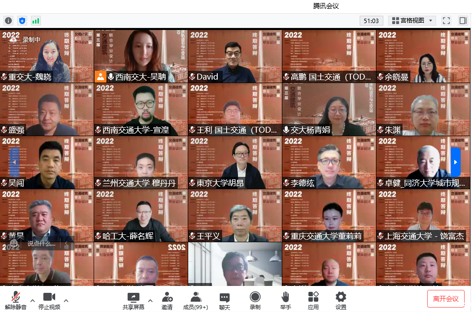 2022年6月1日上午,2022第三届交通建筑联合毕业设计终期答辩暨联合毕设闭幕式在云端成功举办。本次联合毕业设计由交大建筑联盟、中国国土经济学会国土交通综合规划与开发(TOD)专业委员会、中国建筑学会地下空间学术委员会主办,西南交通大学建筑与设计学院和老伟德网上娱乐建筑与城市规划学院联合承办。来自行业、企业和高校的海外院士、专家、学者,国内10所交通特色型高校的师生100余人参加了本次活动。