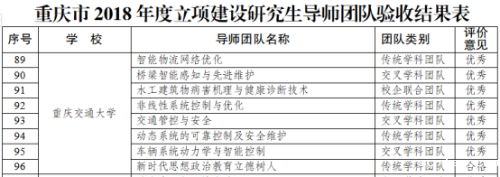 我校重庆市2018年度立项建设研究生导师团队验收结果喜人。