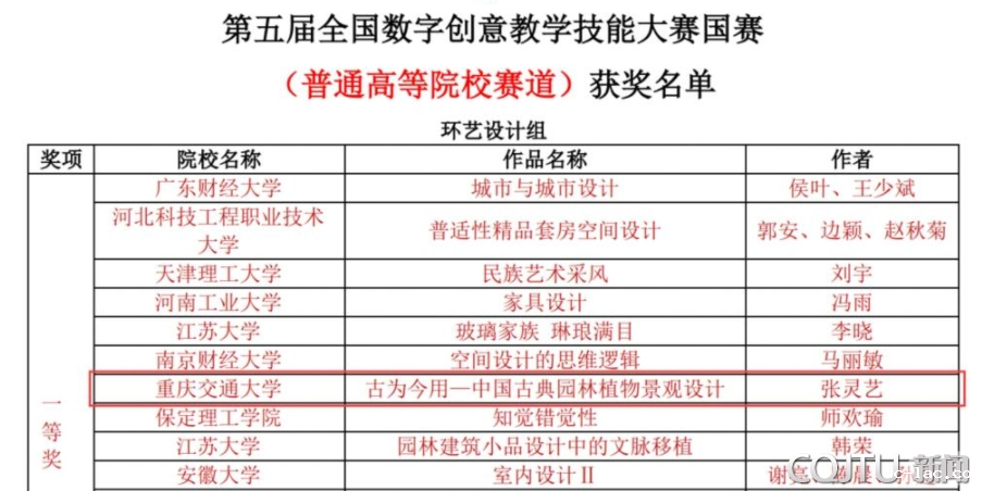 近日,全国数字创意教学技能大赛组委会传来喜讯,我校建筑与城市规划学院风景园林系教师张灵艺在第五届全国数字创意教学技能大赛中荣获环艺设计组一等奖。