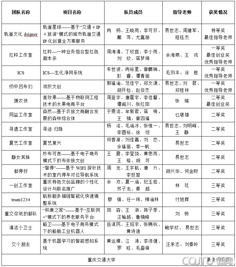 我校15个团队从校赛174支队伍中晋级市赛,在市赛260个团队中表现优秀,全部获等级奖,其中特等奖1项(排名第五)、一等奖3项、二等奖6项、三等奖5项。经济与管理学院易世志副教授带队参赛并同时担任重庆赛区评委。