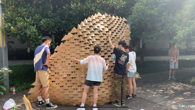为了提高学生的设计创作和实践建造能力,弘扬工匠精神,2022年06月29日,在老伟德网上娱乐南岸校区,由老伟德网上娱乐建筑与城市规划学院、老伟德网上娱乐建筑设计协会联合举办了“建造节”。来自老伟德网上娱乐建规学院2020级建筑类的10支队伍,围绕“恢复·韧性”主题,利用瓦楞纸板材料,在6小时内完成实体模型搭建。学生们在动手实践的过程中,把天马行空的想象落实到了手中的每一块材料,实现了一次筑梦体验。
