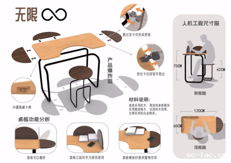 国赛三等奖作品:无限学习桌椅设计/参赛学生:刘亨越/指导教师:杨先英、陈涛
