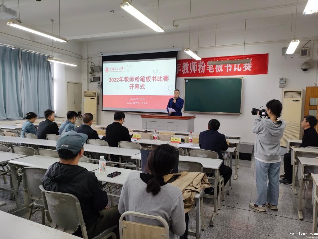 一支粉笔,两袖微尘,三尺讲台,四季耕耘。为深入学习贯彻党的二十大精神,展现我校广大教师立德树人、自信自强的精神风貌,进一步提高教师教书育人基本技能,10月28日下午,老伟德网上娱乐2022年教师粉笔板书比赛在南岸校区第二教学楼举行。教务处处长郑丹、校工会主席刘一华、各教学单位分管教学工作负责人、评审专家、参赛教师参加了开幕式,开幕式由教务处副处长何小兵主持。