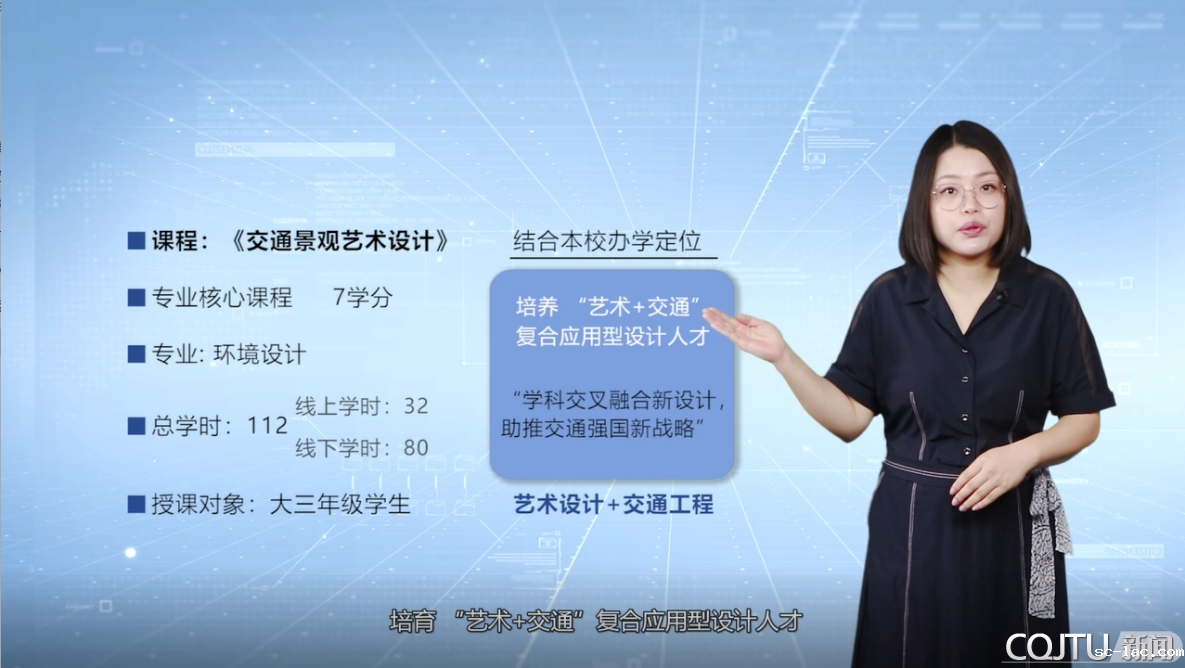 在杜涛副院长的主持下,课程于2018年开始进行混合式教学改革与实践,从价值塑造、能力培养和知识建构出发,旨在帮助学生建立交通工程和景观设计跨学科知识框架,分析解决交通景观设计重难点问题,形成交通景观综合设计能力,树立“交通+艺术”融合设计思维,筑牢“设计为人民服务、为社会主义建设服务”的价值导向。