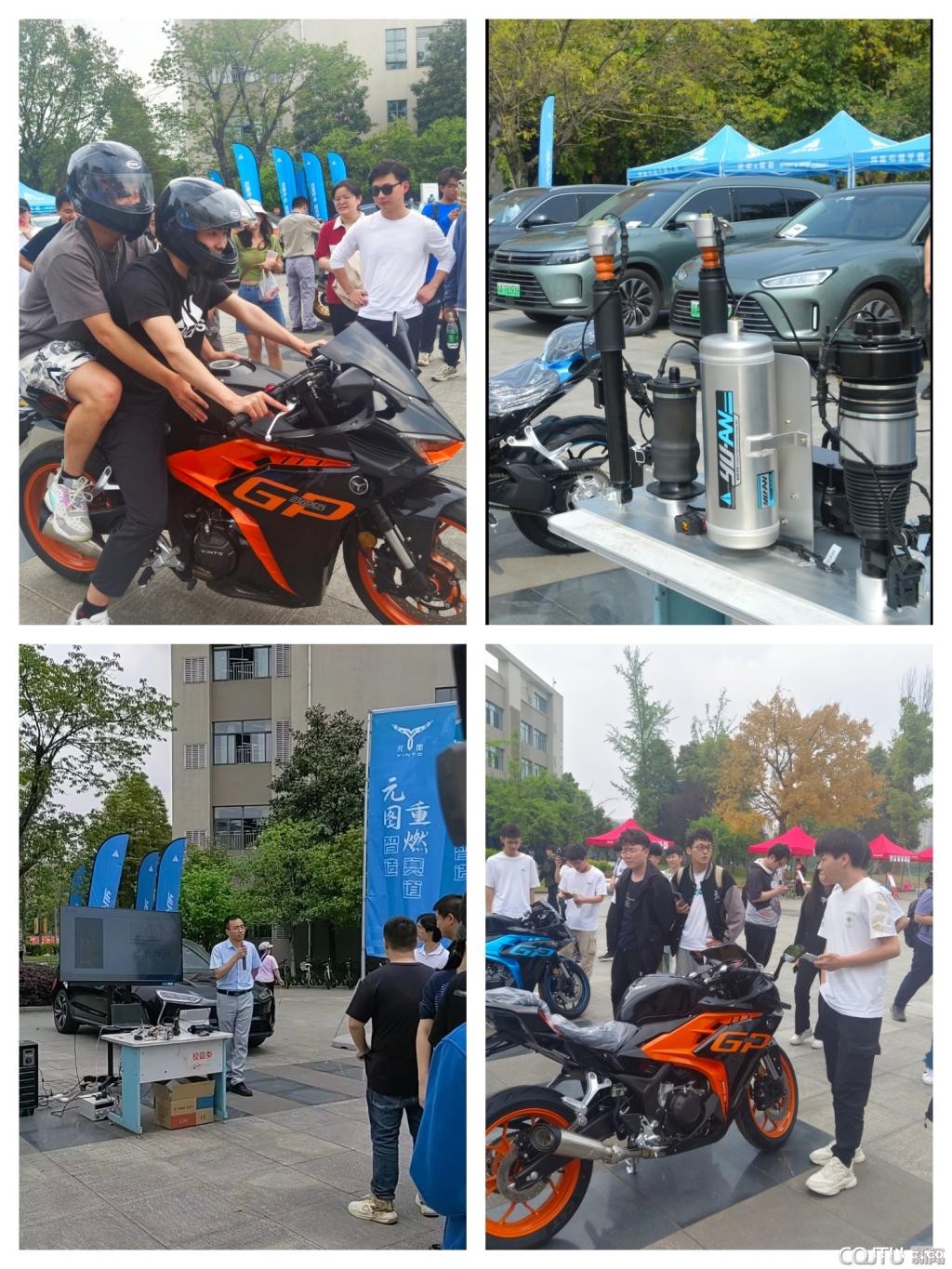 以数学应用为牵引,激发学生参与兴趣。文化节的第一个环节为机车展及数学元素应用知识讲解。本环节由重庆渝安减震器有限公司展示现阶段公司正在重点打造的智能电车和摩托车(赛车)系列,以研发案例和实物展相结合的方式,创设数学教学情境,现场讲解数学知识在空气智能悬架和液压智能减震器方面的应用,同时还提供试乘体验。活动现场,同学们被酷炫的机车造型和先进的智能系统所吸引,认真听取讲解并纷纷试乘,现场火爆。
