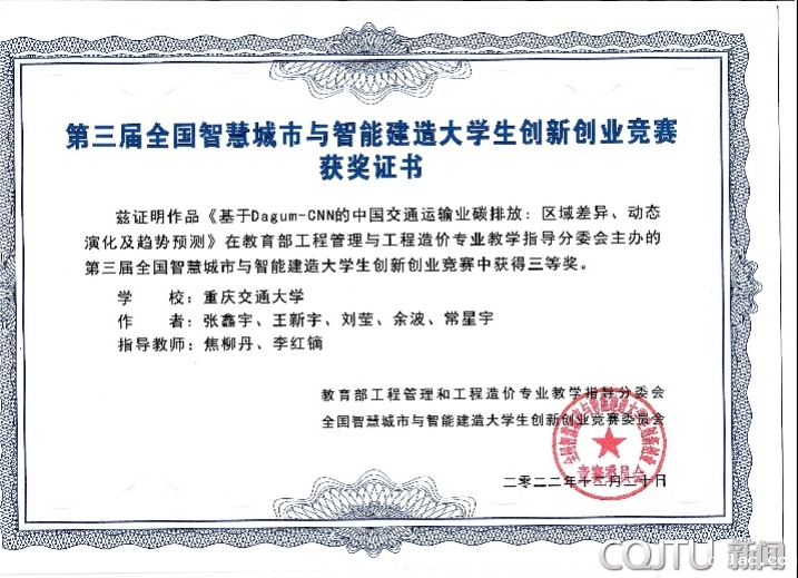 在会议过程中,还举行了第三届全国智慧城市与智能建造大学生创新创业大赛颁奖仪式。由我校经管学院焦柳丹副教授、李红镝教授指导,张鑫宇、王新宇、刘莹、余波和常星宇等同学组成的团队荣获此次竞赛三等奖。焦柳丹老师作为代表领取了获奖证书。