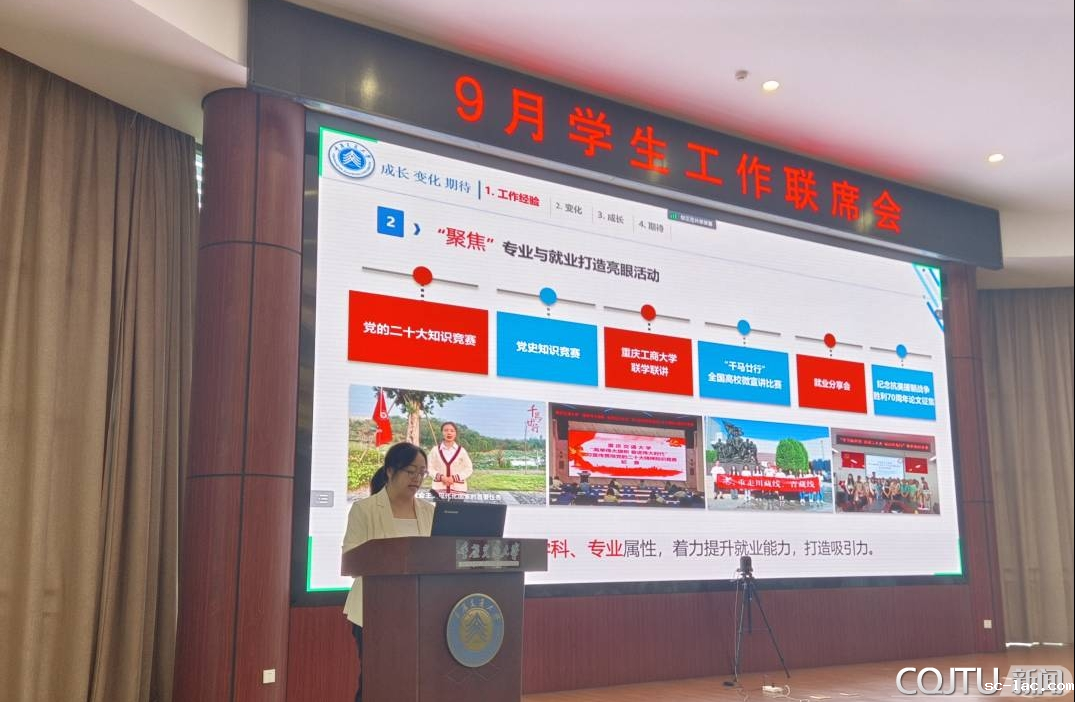 会上,学工部部长叶勇、招生就业处副处长袁理、校团委副书记向巍、研究生院副院长杜嘉分别通报了开学以来的工作情况,并布置了10月学生教育管理服务工作、招生就业工作、团学活动安排等。马克思主义学院学工办主任、分团委书记刘君分享了从事15年辅导员工作的“成长、变化、期待”,艺术设计学院学工办主任、分团委书记王辉作了“学生教育管理——从数据面板到数字赋能”的工作经验分享。