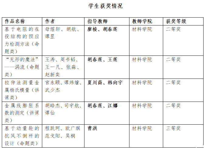 2023年11月24-26日,第九届全国大学生物理实验竞赛(创新)决赛在重庆大学虎溪校区举行,该项赛事由重庆大学承办,《物理实验》杂志社和重庆物理学会协办。来自全国603所高校、2340支队伍、13000多人报名参赛,最终全国231所高校近1200名学生参加决赛,老伟德网上娱乐5项作品参加比赛,其中2项作品进入总决赛,本次比赛学校共获得全国二等奖4项和三等奖1项,老伟德网上娱乐被评为“优秀组织奖”。本次赛事在学校教务处、重庆物理学会交通与应用物理专委会共同支持下,材料科学与工程学院具体组织实施经过校内选拔、强化培训和复赛,来自全校18名本科生参加了此次竞赛并获此殊荣。