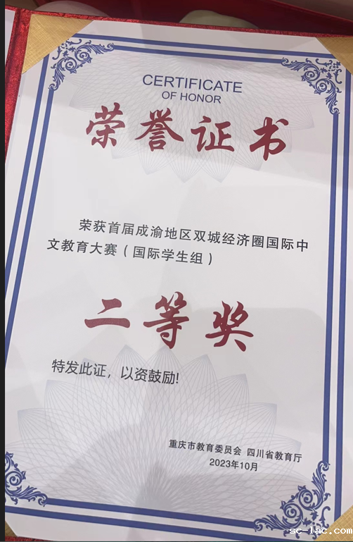 10月18-19日,首届成渝地区双城经济圈国际中文教育大赛总决赛在重庆师范大学举行。来自成渝两地的30名中国学生和30名国际学生进入最终角逐。我校旅游与传媒学院汉语国际教育国际学生获奖。其中来自越南的研二学生张黎何茹(HOUANGVATTHANA ALINA)和老挝的大四学生马妮(MANICHANH AKSONSAVANH)分别荣获本次大赛决赛国际学生组二等奖、三等奖。
