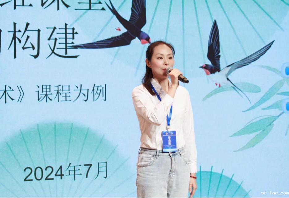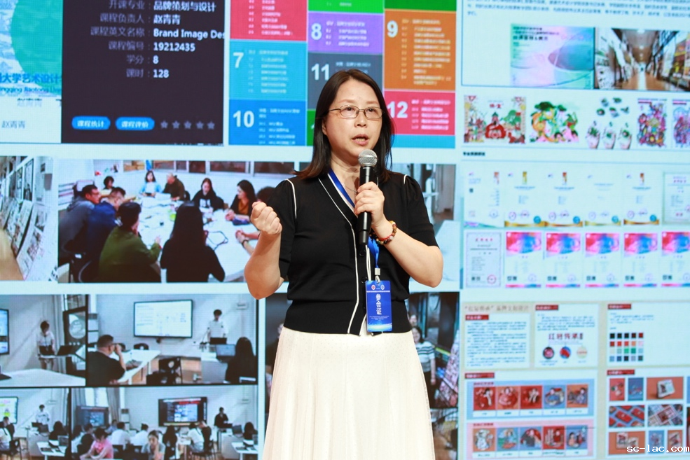 艺术设计学院副教授赵青青就美育课程《品牌构筑·设计解码》作了主题汇报。该课程将艺术设计学院的优势课程转化为全校共享的美育课程,创新性实施了从课程到实践、从创作到展演以文化人、以美育人的“五维联动”美育模式,成为美育浸润行动在大学全面开展的典范。中国高教学会美育专委会常务理事、上海交通大学艺术教育中心主任陈丽璘作为论坛特邀专家高度肯定了课程,认为该课程在美育浸润方面展现了卓越的创新性和实践价值,为高校美育工作提供了新的思路和范例。