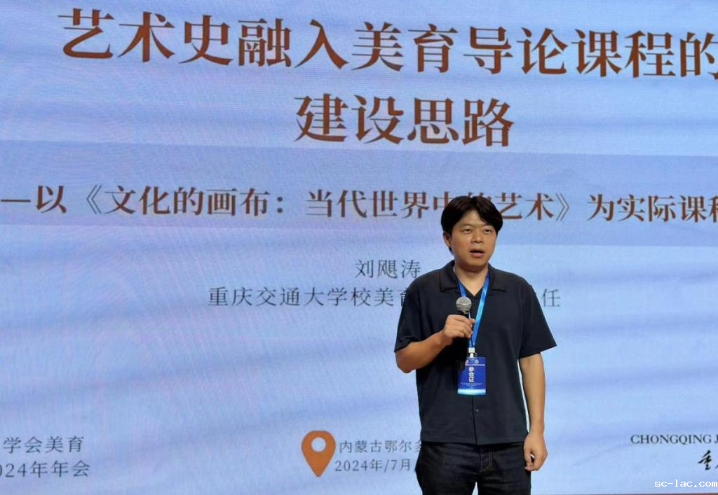 艺术设计学院教师、美育教研室副主任刘飓涛就美育课程《文化的画布:当代世界中的艺术》作了主题汇报。汇报立足我校美育现状,是专为交大学生打造的美育通识导论课程,通过将艺术史常识、人文知识和思政专题、学科前沿、艺术疗愈等前沿美育研究进行融合,以创新方法重构了传统美育导论类课程。清华大学艺术教育中心副主任肖薇作为论坛特邀专家对于该课程在美育通识课程中的创新性、前沿性和课程内容深度给予高度肯定。