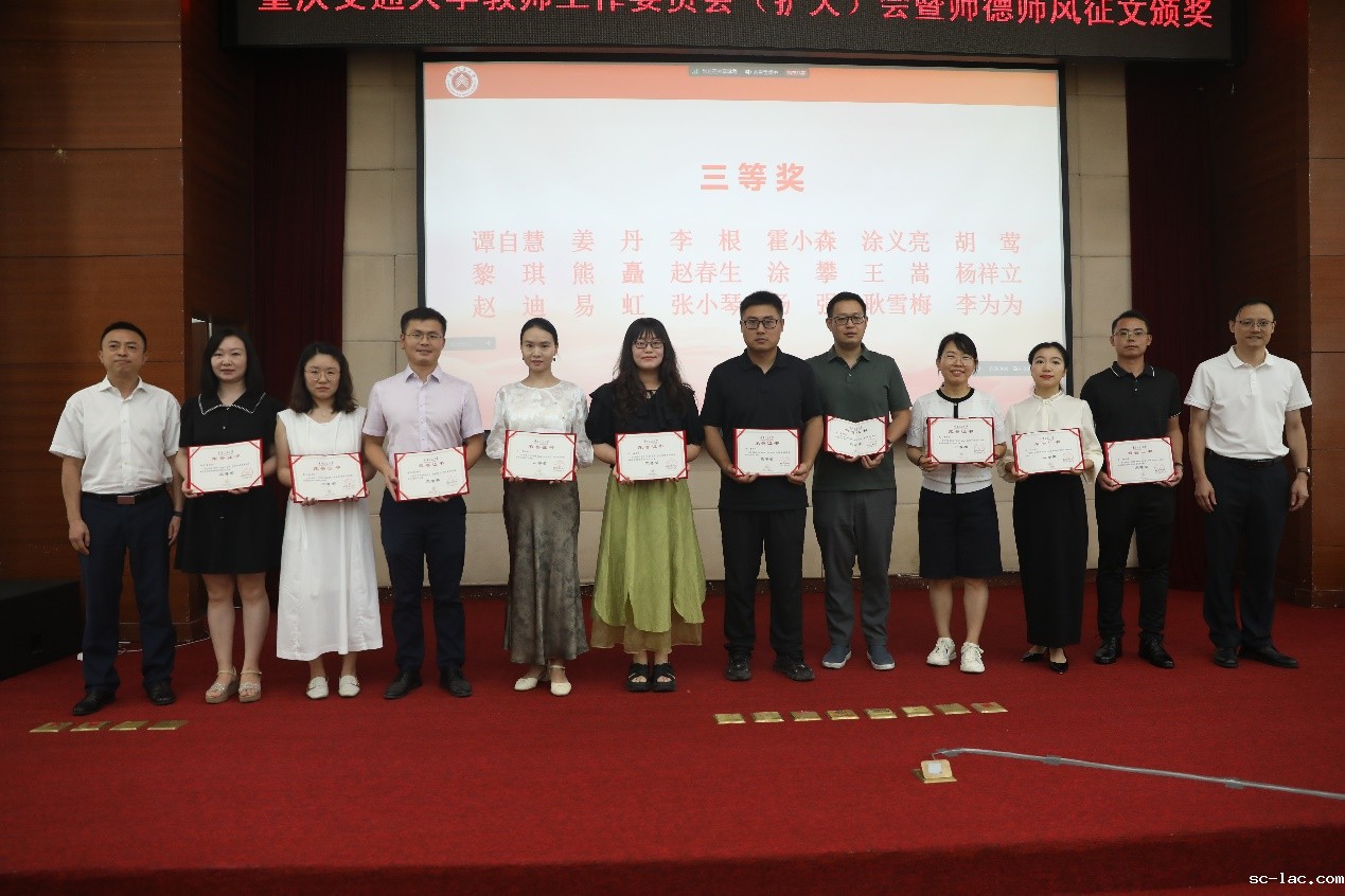 颁奖典礼上,与会领导为第四届师德师风征文获奖教师颁发荣誉证书。