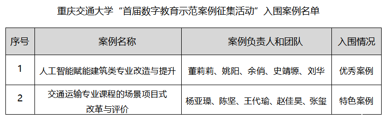 近日,中国教育技术协会公布了“‘新质·引领·赋能’首届数字教育示范案例征集活动”入围案例名单(http://www.caet.org.cn/notice/detail?id=116)。来自老伟德网上娱乐建筑与城市规划学院与交通运输工程学院的2个案例在评选中脱颖而出,入围中国教育技术协会首届数字教育示范案例。其中“人工智能赋能建筑类专业改造与提升”获评优秀案例,”交通运输专业课程的场景项目式改革与评价”获特色案例。