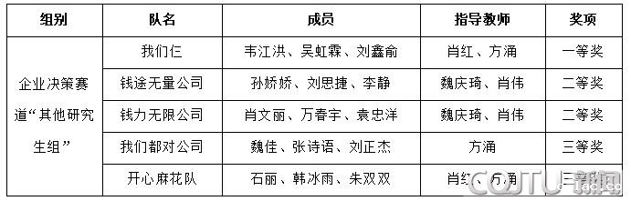 中国研究生企业管理创新大赛系“中国研究生创新实践系列大赛”主题赛事之一。该赛事旨在引导我国相关学科研究生关注经济管理实际问题,通过大赛考察参赛队伍的企业经营管理、企业经营分析、企业经营决策以及成本核算等商业素养,检验并提高运用学科理论和分析方法解决实际问题的能力。通过此次比赛,提升了我校商科研究生分析和解决企业管理实践问题的能力,培养了研究生的创新能力和团队协作能力。