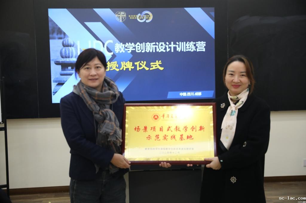 教育部跨学科课程教学创新改革虚拟教研室副主任郝莉向教工部部长邹赐岚授牌
