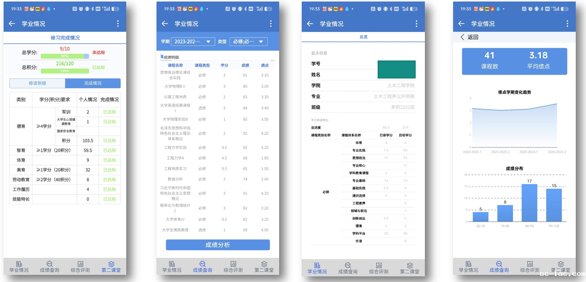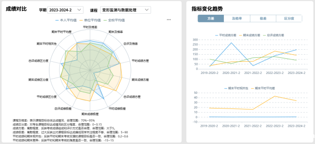 建设教师课堂教学、课程考核、教学建设成果、学生学业等数据看板,实现师生教学画像。发布《学科竞赛分析报告》《专业建设分析报告》《课程考核分析报告》等22个专项分析报告,为持续改进提供了数据支撑。数据驱动的质量保障体系建设得到审核评估专家认可。