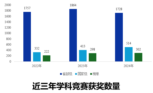 获全国性学科竞赛奖项514项,其中最高奖79项,国家级获奖数量比上一年增加24.4%。获得榜单高水平赛事全国性奖项302项,位居全国普通高校学科竞赛榜第84位。《点沙成土,化草为粮——筑牢生态屏障,保障粮食安全》斩获中国国际大学生创新大赛(2024年)金奖,实现历史性突破。
