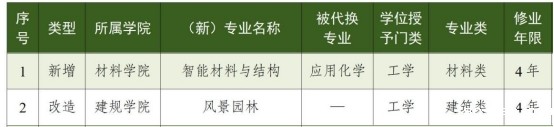 近日,教育部发布《关于公布2024年度普通高等学校本科专业备案和审批结果及普通高等学校本科专业目录(2025年)的通知》(教高函〔2025〕3号),学校申报的“智能材料与结构”本科专业成功获批,“风景园林”专业修业年限由五年调整为四年。