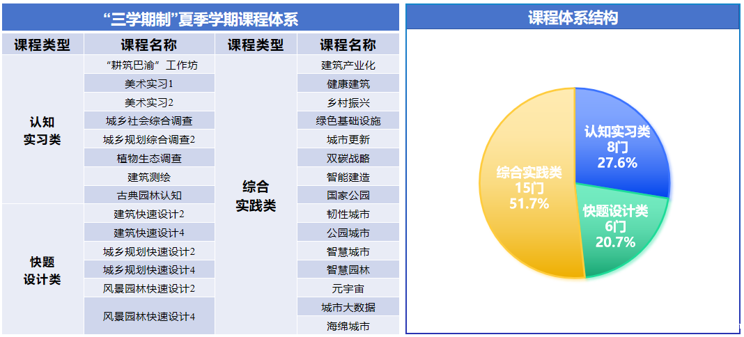 时间维度:利用夏季小学期集中时段,设置“认知实习”“快题设计”“综合实践”三阶模块,确保实践教学连续性与深度;空间维度:将课堂从教室延伸至城乡现场,在真实问题中构建“学-研-创-用”闭环;资源维度:整合校政企多方资源,通过市级“设计下乡工作室”“耕筑巴渝工作坊”等平台,引入行业前沿课题与真实项目。