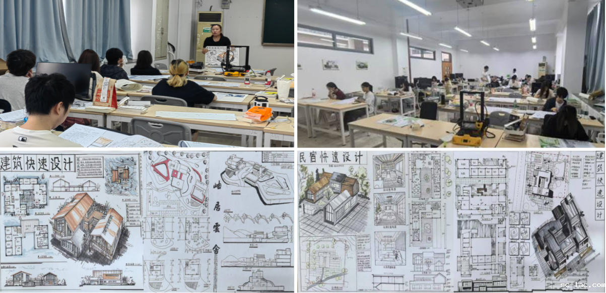 建筑系师生围绕“空间设计”核心能力展开实战。通过《建筑快速设计2》集中实践课程高强度实战训练,培养学生限时快速表达建筑设计构思的能力。采用“8小时极限设计挑战”模式,强化手绘对空间推演、建造逻辑、艺术表达的