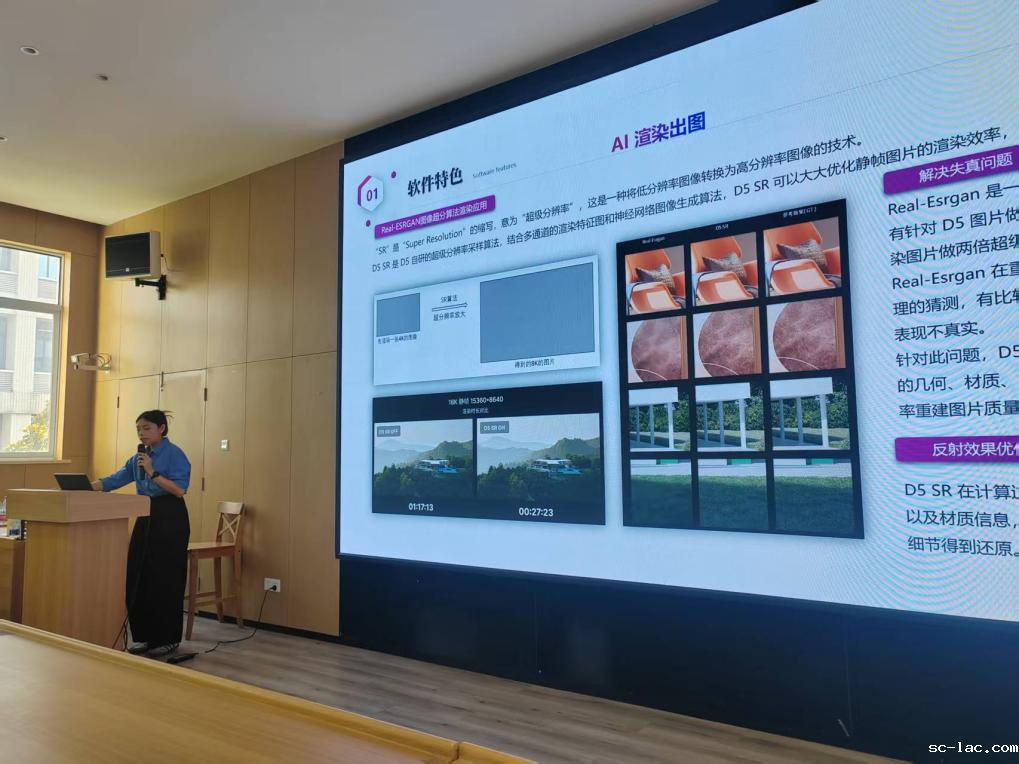 实训中,杜仙雨工程师对D5渲染器作为三维设计创作工具的特色与优势进行了简要介绍,系统讲解并现场演示了其在场景搭建、光影效果渲染等环节的操作技巧与应用要点。通过实际案例分析,引导学生积极思考如何将三维设计软件应用与设计实践紧密结合,激发其对数字设计技术应用能力提升的浓厚兴趣。实训现场,同学们就D5渲染器在不同设计场景中的应用、视效制作技巧、与其他软件的协同工作等问题与杜工程师进行了深入探讨,在亲手操作与反复实践中,深刻体会D5 渲染器的强大功能,培养解决实际问题的能力,实现从理论学习到实践应用的无缝对接。