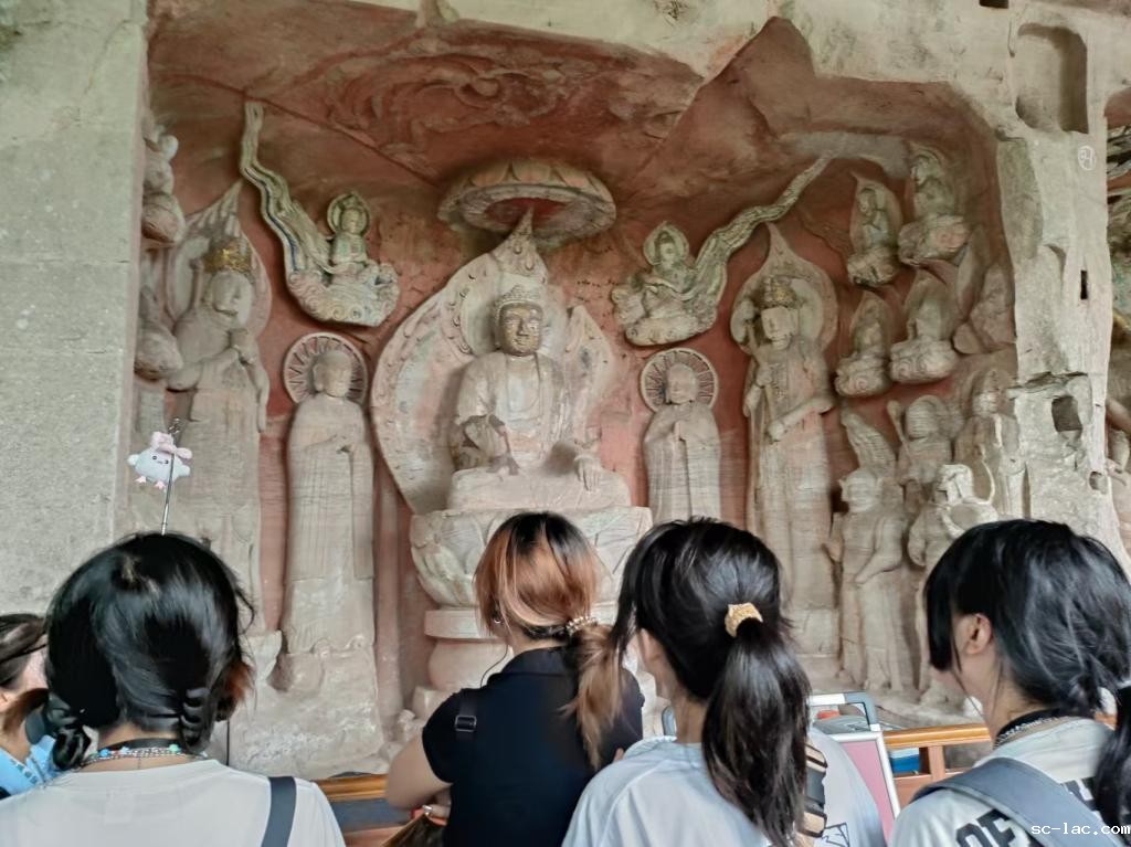 在荣昌陶博物馆及安陶小镇,师生们不仅在3400多平方米的展厅见证了荣昌陶从汉代至今的千年发展史,也在安陶小镇泡菜坛造型的景区大门、沿街而设的陶文化长廊与陶艺体验馆中,360°体验了“水绕古镇、陶香悠然”古陶都味道。在荣昌夏布小镇,师生们体悟了夏布技艺的中国范儿与世界魅力。在大足石刻,师生们叹服于大足石刻的千年历史与艺术价值。