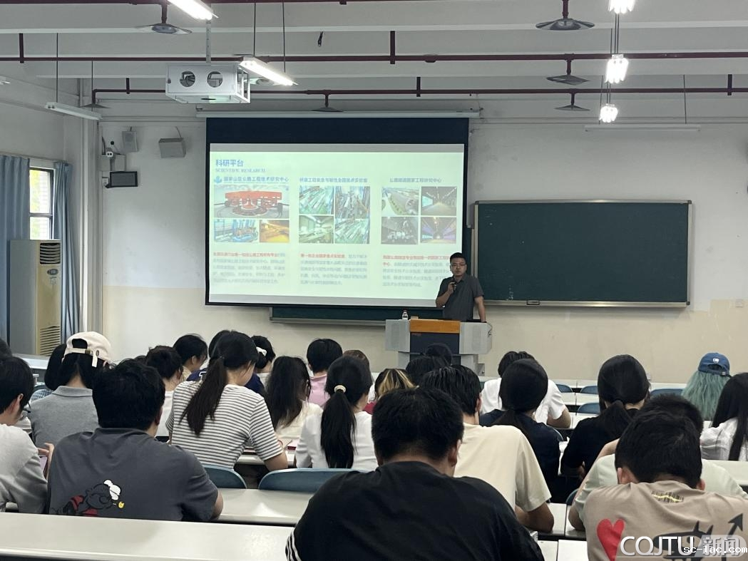 于超通过生动的案例和详实的数据,向同学们展示了如三维探地雷达、智能道路检测车、无人机巡检系统、自动化桥梁检测机器人、智能传感器网络等尖端设备如何在实际工程检测中大显身手。“这些设备如同给公路做‘CT’和‘体检’,能快速、精准、无损地获取路面状况、结构内部缺陷、桥梁健康状况等关键信息,大大超越了传统检测的局限。”专家深入浅出地讲解配以丰富的现场图片和视频,让同学们直观感受到科技带来的变革力量。互动环节,同学们就智能检测技术的成本效益、人才培养需求、技术推广难点以及未来发展趋势等问题踊跃提问,于超一一给予了细致的解答。