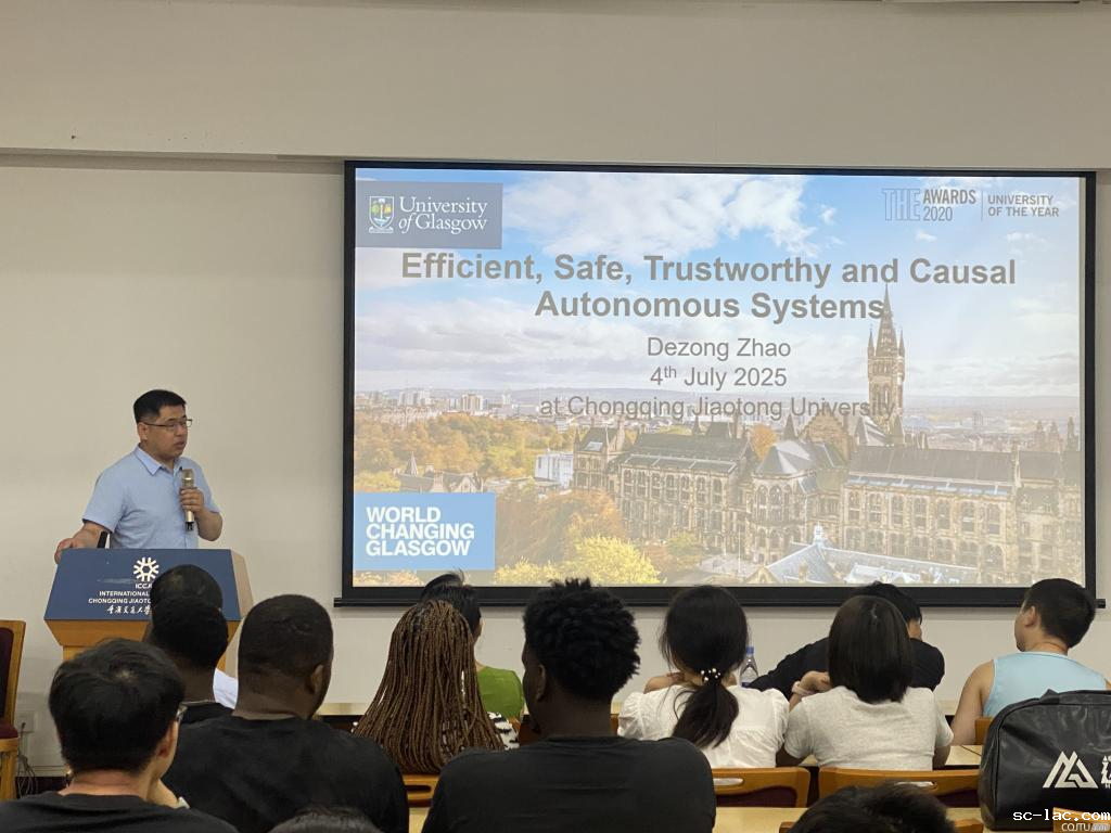 7月4日,赵教授在学校举办了主题为《Efficient, Safe, Trustworthy and Causal Autonomous Systems》的国际视野大讲坛,来自交通运输学院的研究生和国际留学生共计100余人参与。讲座中,赵教授深入浅出地阐释了自动驾驶技术的发展前沿,强调了高效、安全、可信和因果推理在智能交通系统中的重要性,激发了广大师生对该领域的浓厚兴趣。
