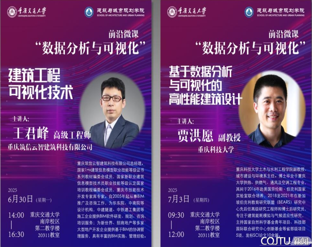 四年级则按照“前沿拓展”的培养思路,引导学生追踪学科专业前沿,迈向专业纵深领域,为后续的毕业设计和综合训练奠定基础。学院按照“人文”“绿色”“数智”三大方向精心设计了《前沿微课》系列课程,涵盖全球定位导航技术、智能建造、“双碳”战略等六大前沿领域。邀请重庆市地理信息和遥感应用中心教授级高级工程师胡艳、李朋龙等行业知名专家开讲,充分融合国际技术与应用实践,以“空天地”一体化等案例为载体,打破学科壁垒,构建起“技术—场景—政策”的前沿知识网络。