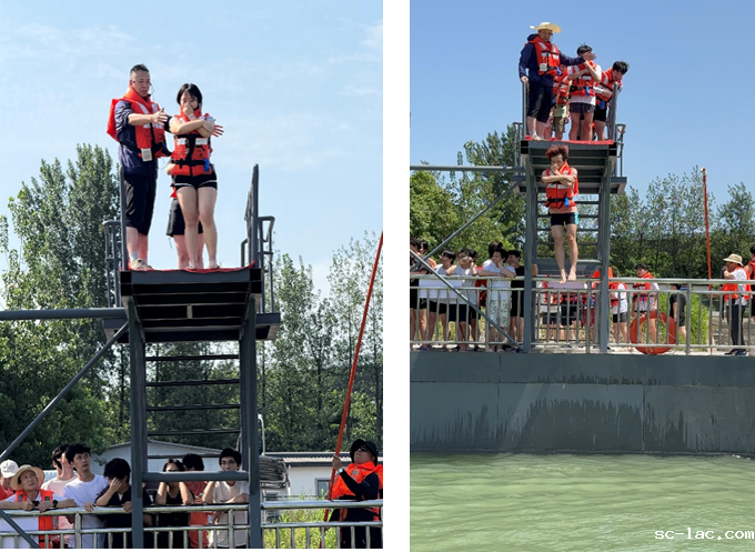 在专业教师指导下,首批参训学员顺利完成训练任务。部分学生成功挑战5米跳台,更有女生主动加练,突破自我。训练结束后,学员们普遍反馈:“新跳台的专业设计高度还原了实际工作场景。虽然初次登高难免紧张,但在老师的专业指导和同伴的鼓励下,我们不仅克服了心理障碍,更收获了宝贵的实战经验。”