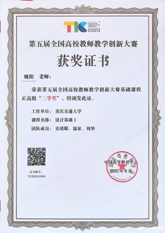 8月17日至19日,由教育部高等教育司指导、中国高等教育学会主办的第五届全国高校教师教学创新大赛全国现场赛在北京理工大学成功举办。我校建筑与城市规划学院姚阳教授团队(参赛课程《设计基础1》;团队成员:史靖塬、温泉、刘华),荣获基础课程正高组全国二等奖,续写了学校在该项赛事中的佳绩,充分彰显了我校在教学改革创新、提升人才培养质量方面的深厚积淀与持续领先实力。