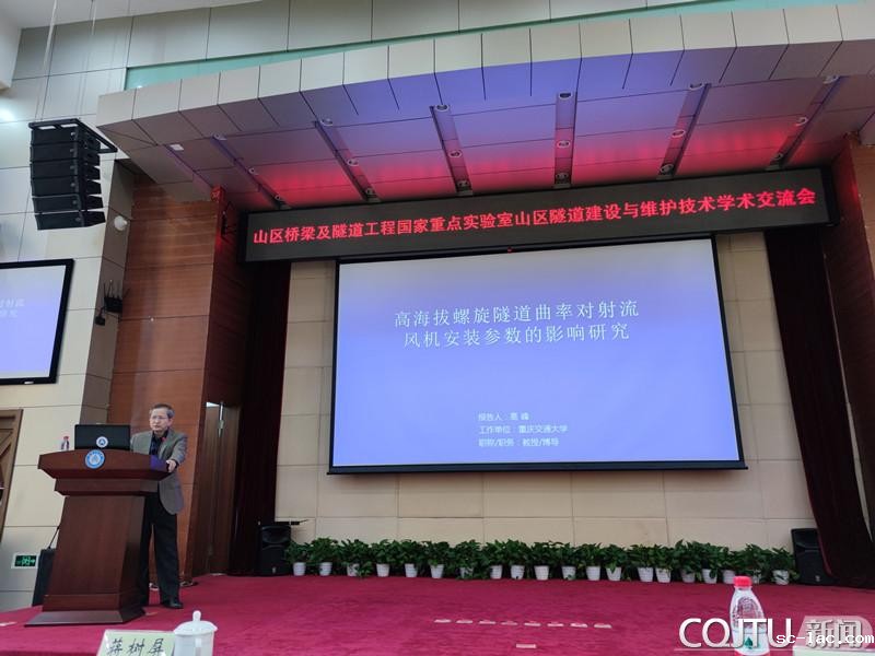 高峰教授作了《高海拔螺旋隧道曲率对射流风机安装参数的影响研究》报告。高峰教授就风机升压特性影响因素、正交试验、数值模型建立展开报告,详细阐述了高海拔螺旋隧道曲率对射流风机安装参数的影响,结合现有技术成果,在相应决策建议上产出新的成果。
