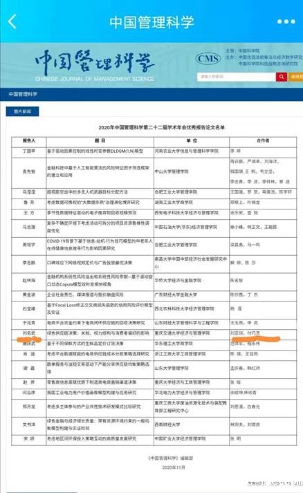 我校经济与管理学院刘名武教授受邀参会并汇报了论文《绿色供应链决策:关税、权力结构与消费者偏好的影响》(合作者:刘亚琼、付巧灵),该文获得入选2020年中国管理科学第二十二届学术年会优秀报告论文。论文解析了关税、供应链权力结构与消费者偏好对供应链成员决策和利润的综合作用机理。