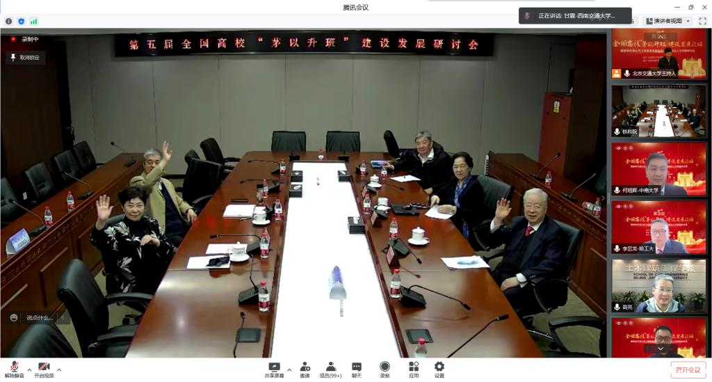 2022年5月8日上午,第五届全国“茅以升班”建设发展论坛暨新时代茅以升工程教育思想传承与拔尖人才培养研讨会在线上举行,我校道路系主任杨博副教授、桥梁系主任钱骥副教授、“茅以升班”在校生桂钰杰、阳云明参会,并交流了老伟德网上娱乐“茅以升班”土木工程卓越人才培养模式探索。