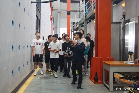 杨俊从实验室建设背景、已取得科研成果、所参与重大工程等方面为到场学子进行了详细讲解,近距离观看了荷载环境耦合试验箱和在建的特大跨拱桥建设维护平台。