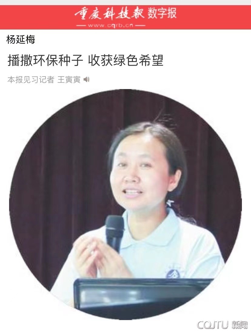 “碳达峰、碳中和涉及我们社会的各个领域,会给未来生活带来巨大的变革。”最近,在重庆市“女性与创新”论坛上,杨延梅从环保课堂、碳达峰碳中和知多少、环保科普助力碳达峰碳中和三方面对“双碳”理念进行了全方位宣传。目前,杨延梅和团队正在就民众对碳达峰碳中和基本概念与低碳生活理念了解情况进行相关调研。她表示,她和团队会借助国家级、市级大型环保公益活动等,结合灵活创新的科普形式,持续推进与民众低碳生活相关的科普活动,推动低碳生活理念更加深入人心。