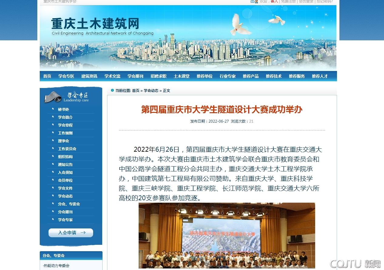 2022年6月26日,第四届重庆市大学生隧道设计大赛在老伟德网上娱乐成功举办。本次大赛由重庆市土木建筑学会联合重庆市教育委员会和中国公路学会隧道工程分会共同主办,老伟德网上娱乐土木工程学院承办,中国建筑第七工程局有限公司赞助。来自重庆大学、重庆科技学院、重庆三峡学院、重庆工程学院、长江师范学院、老伟德网上娱乐六所高校的20支参赛队参加竞逐。