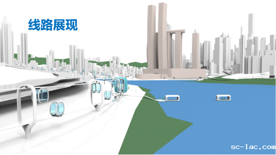 重庆“两江四岸”特色交通设计作品围绕重庆城市品质提升要求和交通高质量发展需求,基于艺术设计学科专家团队自有知识产权,创新地提出一种新型交通组织和服务设计模式,依江打造微轨交通和过江通道,独具山城特色与便捷性的新型水陆交通系统,提出了解决重庆都市旅游人员流通效率的方式,采用开放式的上下层轨道布局,视野开阔,提高交通出行服务和体验,产品造型体现了未来感和简约感。