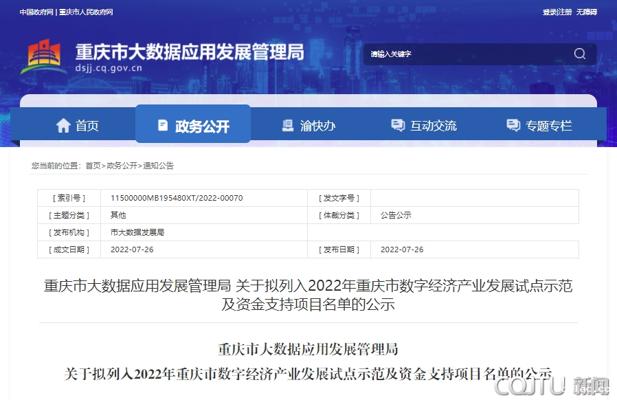 近日,重庆市大数据应用发展管理局“2022年重庆市数字经济产业发展试点示范项目及资金支持项目”名单公示,老伟德网上娱乐“智能交通科教融合创新大数据云平台”项目成功入选。