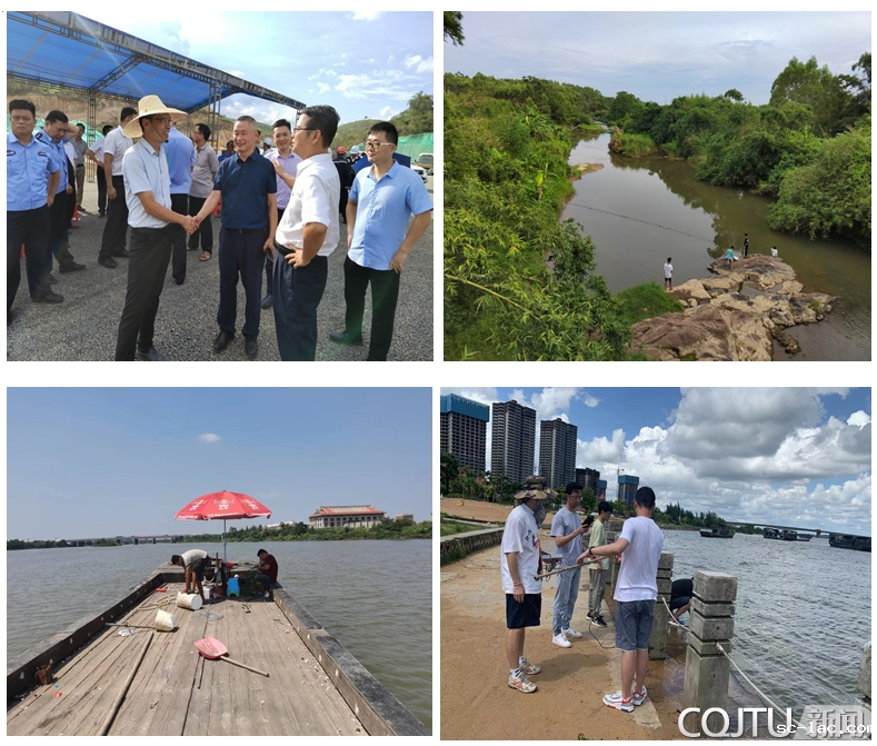 2022年8月,河海学院院长杨胜发教授、国家内河航道工程中心常务副主任胡江教授带领团队,会同运河建设和各级主管部门组成联合考察组,进行了持续近20天的现场考察调研。现场布置开展了26个无资料支流河口的水文、泥沙和地形无人机测量工作,以及青年枢纽上下游40km河段盐度分布的在线监测和水质监测工作等。结合项目调研考察,杨胜发、胡江带领团队走访了平陆运河集团、中交水运规划设计院、黄河勘测设计院、平陆运河建设指挥部以及钦州市水务局、钦州市水利局等10余家相关单位,开展访企拓岗和产学研合作交流,全面调研把握平陆运河建设的重大关键技术问题和关注的热点问题,在此基础上完成了三个项目研究大纲的编制,获得一致认可,为后续的研究工作指明方向和收集了宝贵资料。