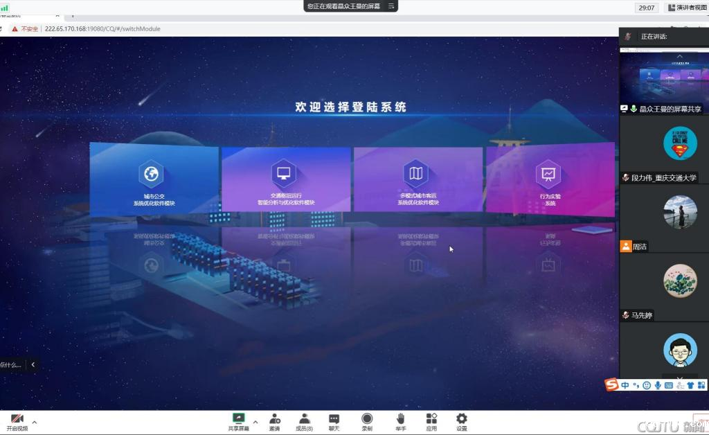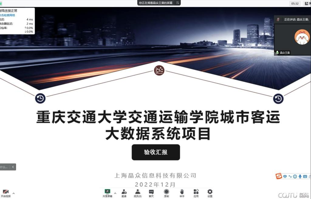 2022年12月13日,交通运输学院组织专家对上海晶众信息科技有限公司承担的“城市客运大数据系统”开发进行在线技术验收。验收专家由来自交运学院的陈坚副院长、马新露教授、段力伟副教授、张玺副教授、杨亚璪副教授以及马先婷老师等6人组成。