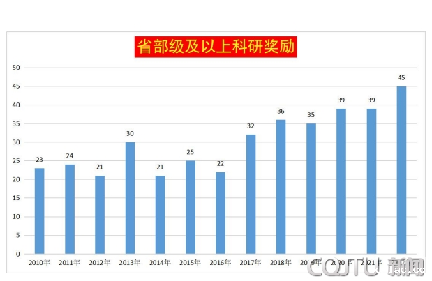 省部级及以上级别科技奖励首次突破40项。2022年,学校面向新战略,服务大工程,参与一批世界级超级工程重大科研攻关,开展沙漠生态恢复、农业发展、城市绿化等技术输出合作,服务“一带一路”、西部陆海新通道、成渝双城经济圈建设,服务了十余项世界之最桥隧等代表性重大工程建设,成果突出。获得各类省部级及以上级别科学技术奖励45项,其中,重庆市科技奖励12项(科技技术一等奖3项、二等奖4项、三等奖5项),获奖数量为近年来最好成绩。其他省部级奖励33项,其中,中国公路学会科技奖励8项(一等奖4项),中国航海学会科技奖励3项,其他科技奖励21项。