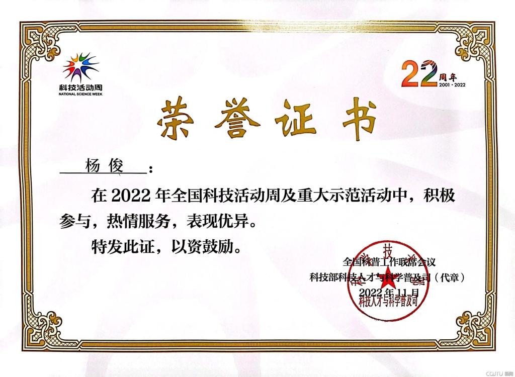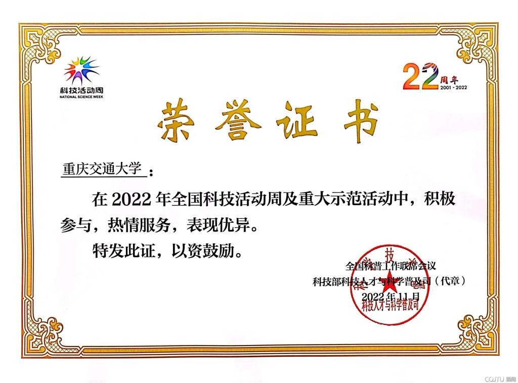 该活动近日获得国家科技部、交通部以及中国科协高度肯定并授予表彰。本次活动周的成功举办提升了我校学术声誉,推动了交通运输科技创新与科普协调发展,进一步激发了全行业普及科学知识、弘扬科学精神、提高科学素养,展示了交通科技创新成就,支撑了交通运输高质量发展和交通强市建设。