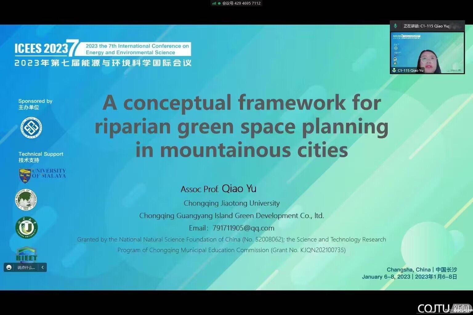 1月6日至8日,第七届能源与环境科学国际会议(ICEES2023)在湖南长沙中南大学成功举办。过去六年ICEES分别在泰国法政大学、马来西亚马来亚大学、韩国首尔、澳大利亚珀斯以及2021-2022年线上成功举办。本次国际会议采取线上的形式,来自中国、秘鲁、罗马尼亚、韩国、马来西亚、泰国、美国、加拿大、澳大利亚、新加坡、韩国、沙特阿拉伯、土耳其、瑞士等国家共238位的参会人员参与了本次会议,会议围绕能源与环境展开,贴合国家“碳达峰碳中和”战略目标,符合国际发展趋势。该国际会议论文将成册出版,并被EI检索。